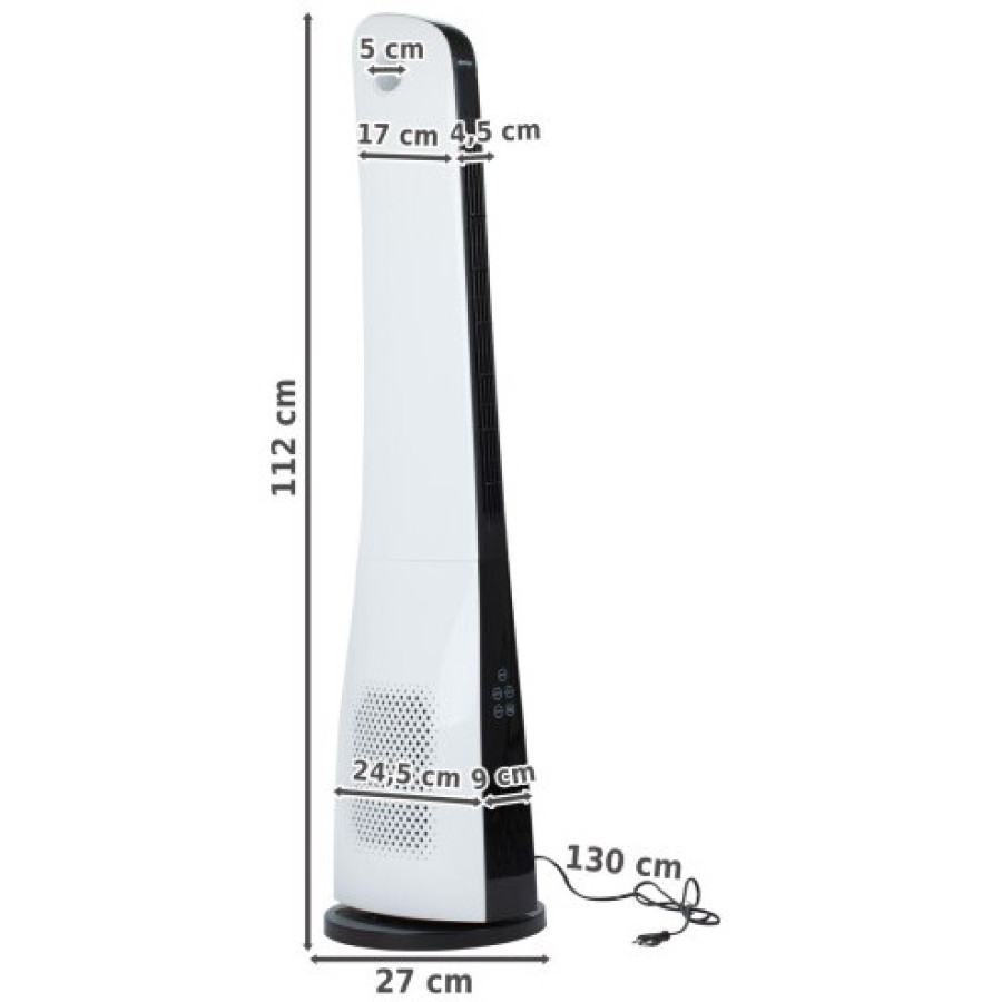 Важнейшие особенности: Тихая работа Легкая и быстрая сборка Быстрое ощущение прохлады Функция колебания Настройка с помощью 3 вариантов воздушного потока Встроенный таймер Пульт управления Элегантный дизайн Подойдет для любой комнаты Колонный вентилятор вместо классического оснащен турбинным вентилятором, который обдувает всю высоту вентилятора. Воздушный поток оптимизирован и не потребляет много энергии по отношению к количеству выдуваемого воздуха - что делает его экологичным и экономичным! Доступная цена, удобство в использовании и тщательное исполнение высоко оценивают все желающие и клиенты Основные характеристики Производитель: MalTec Модель: WK300WT Мощность: Eco 50W / Max 100W Высокий поток воздуха Регулировка и колебания: ДА Регулировка потока воздуха: ДА, 3-х ступенчатая Три режима воздушного потока: нормальный/естественный/сон Питание: сетевое Напряжение: 230В Низкое энергопотребление Крест дуновения Сенсорная панель Тихая работа Дистанционный Уровень шума: до 57 дБ Встроенный таймер: 1-15 ч Высота: 112 см Диаметр основания: 27 см Цвет: белый и черный Длина шнура питания: 135 см Размеры коробки: 113,5x31,5x22 см Вес: 3,8 кг В комплекте: Вентилятор MalTec WK300Wt Удобная база Руководство на польском языке Пульт